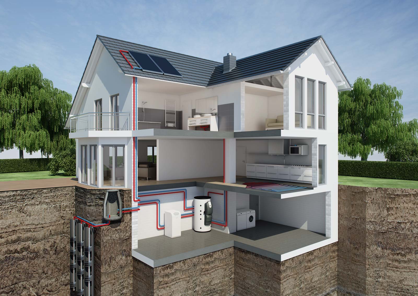 Ein System der Sole/Wasser-Wärmepumpe arbeitet mit Erdsonden, die tief in den Boden eingelassen werden und dort die Wärme aus der Erde ziehen. Ab einer Tiefe von ca. 10m hat die Erde eine relativ konstante Temperatur zwischen 8° und 12°. Um diese Energie effizient zu nutzen, werden Bohrungen von ca. 20 cm Durchmesser und 60 bis 100m Tiefe genommen.